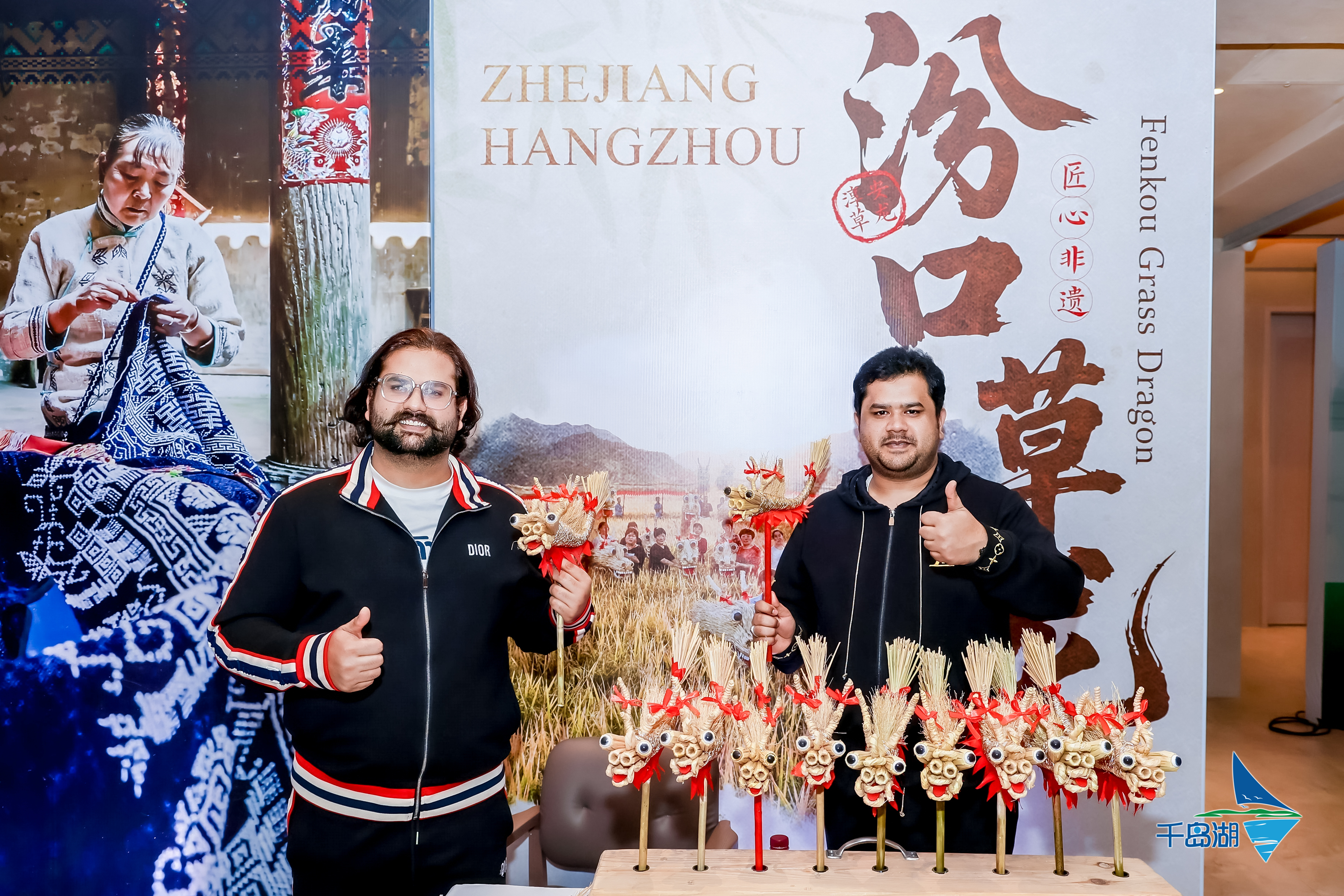 多元互动沉浸体验,品味地道千岛湖淳安药膳、鱼子酱、鱼头汤等创意菜品现场制作、抽奖游戏等互动环节,让现场嘉宾大饱眼福和口福。此外,还特设非遗互动体验区,带来一场可看、可玩、可品的文化盛宴。国家级非遗淳安竹马、睦剧的现场表演,里商仁灯、八都麻绣、淳安鱼拓等工艺展示区,鸠坑毛尖茶、淳安抹茶、“艾浙里”艾灸的康养体验,这些互动不仅丰富了活动内容,更让国际嘉宾直观感受到千岛湖独特的地域文化底色。