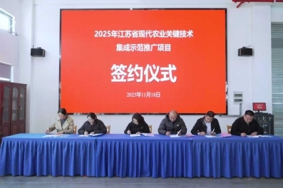 项目负责人陈素娟教授汇报实施方案,围绕“绿色”与“智慧”两大核心,重点开展叶菜类、茄果类蔬菜新品种引进、集约化育苗、水肥一体化、病虫害绿色防控、机械化轻简栽培及智慧化管理等关键技术的集成与示范。同时与昆山市优来谷成科创中心、常熟董浜镇杨塘村绿色蔬菜保供基地、张家港江苏鸿逸泰生态农业科技发展有限公司、江阴青禾农场、江苏翰雅有机农场有限公司五家核心示范基地举行了现场签约仪式,共同推进项目的实施。