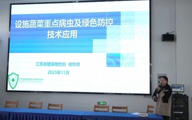 会议第二阶段为培训观摩活动,由南京农业大学郭世荣教授、江苏省植保植检站褚姝频科长、江苏省互联网农业发展中心彭汉艮副主任分别就叶菜优质高效栽培、设施蔬菜绿色防控、新型农业经营主体数智化转型进行了专题分享,培训结束后,参会代表参观了昆山优来谷成科创中心玉叶智慧农业产业园。