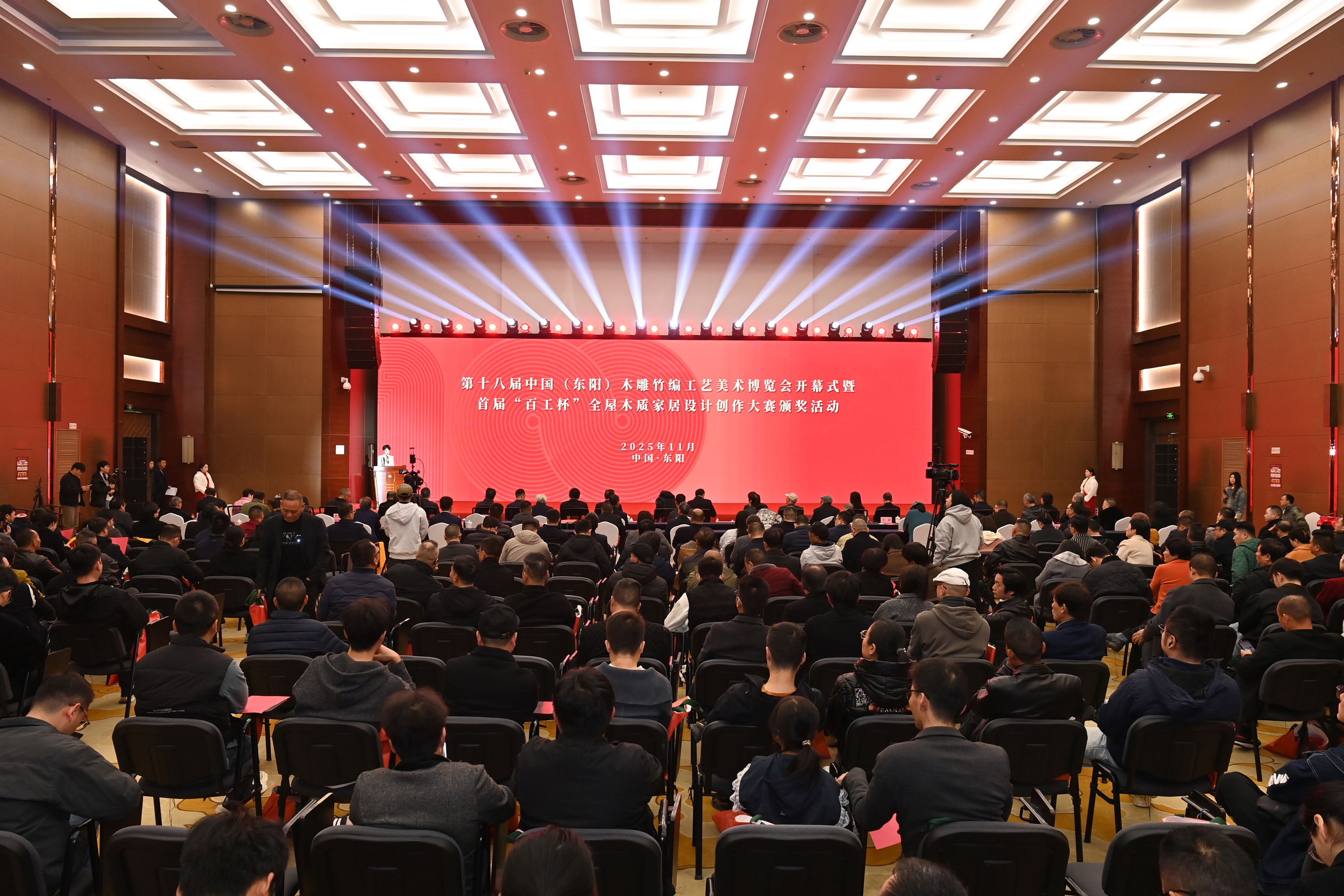 11月22日,以“ 匠心传经典,新质向未来”为主题的第十八届中国(东阳)木雕竹编工艺美术博览会开幕式暨首届“百工杯”全屋木质家居设计创作大赛颁奖活动在有着“中国木雕之乡”美誉的浙江省东阳市的中国木雕博物馆举行。