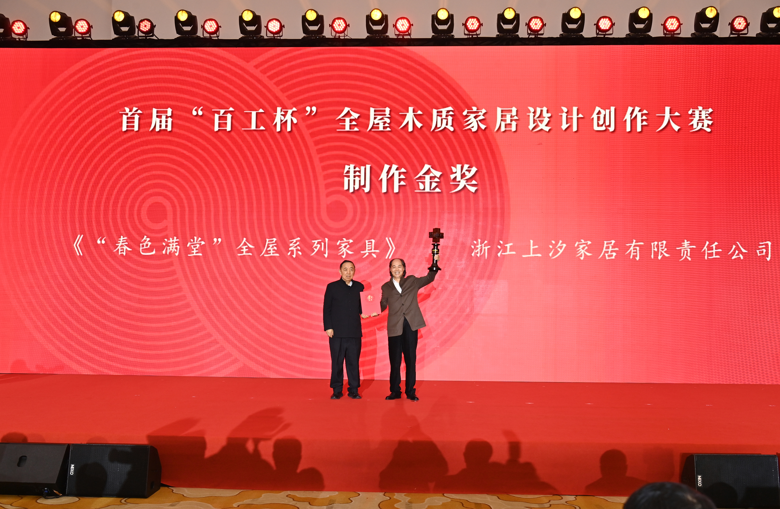 现场举行了首届“百工杯”全屋木质家居设计创作大赛颁奖仪式。本次大赛得到全国各地创作者的积极响应,百套作品入围。多套作品分享了贡献奖、优秀奖和金银铜奖各大奖项。