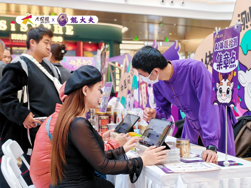 科技赋能与传统智慧的碰撞,让健康咨询更高效精准。游园会特设的AI体质检测区,通过简单询问以及面部、舌象智能识别,快速完成体质检测,同步生成饮食、作息及茶饮适配建议,操作简便无需等候,完美适配商场的快节奏场景。检测区旁的中医博士问诊区,为有深层需求的市民提供一对一辨证咨询,“先检测、再深聊”的科学流程,既省去盲目问诊的困扰,又让专业建议更具针对性,这种“科技+专业”的服务组合,赢得了市民的广泛认可。龙大夫中医博士俱乐部也是中医消费领域一次创新实践。