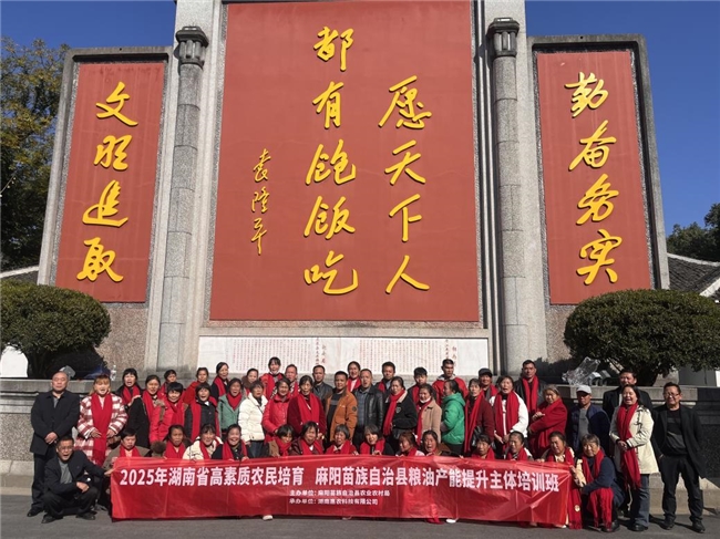 11月28日,为期7天的2025年湖南省高素质农民培育麻阳苗族自治县粮油产能提升主体培训班(第一期)在怀化市麻阳苗族自治县尧市镇马山谭村落下帷幕。来自县内从事水稻、油菜等粮油种植的50名家庭农场主、种植专业大户、农民合作社骨干及有迫切学习需求的粮油作物种植户,经过系统培训顺利结业,带着新知识、新技能奔赴田间地头,为当地粮油产业高质量发展与乡村振兴注入鲜活动能。