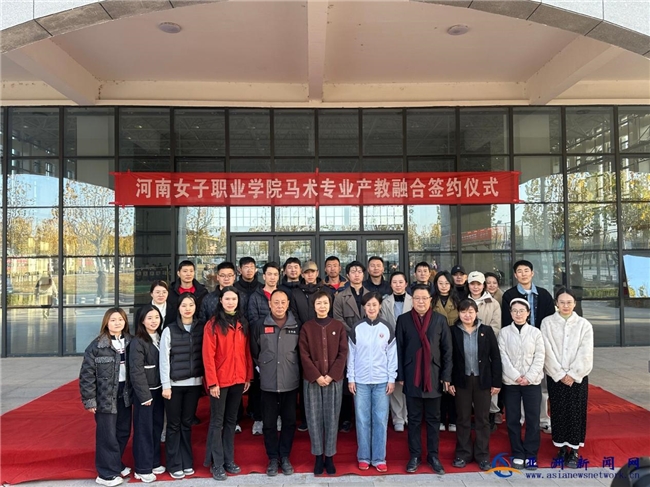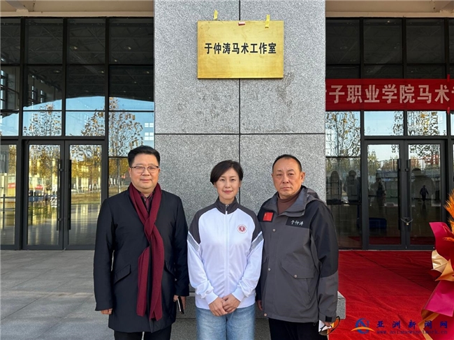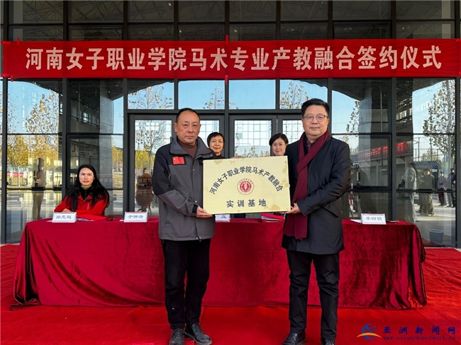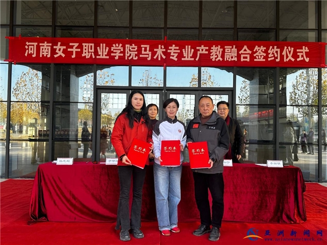 2025年11月25日下午4时,河南女子职业学院北校区体育馆内氛围热烈,该校体育与健康学院与克拉玛依区于仲涛体育工作室、新乡平原示范区新体马术俱乐部有限责任公司三方签约仪式顺利举行,标志着河南省马术高等职业教育实现“零的突破”。