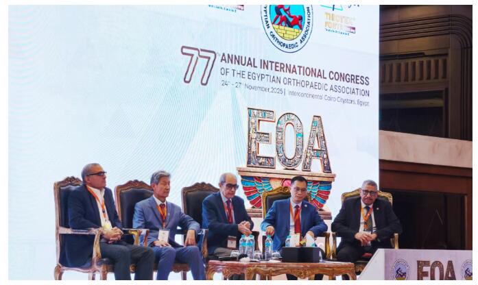 2025年11月24日,历史悠久的尼罗河畔迎来全球骨科医学的盛会——第77届埃及骨科学会(EOA)国际年会于名城开罗隆重启幕。
