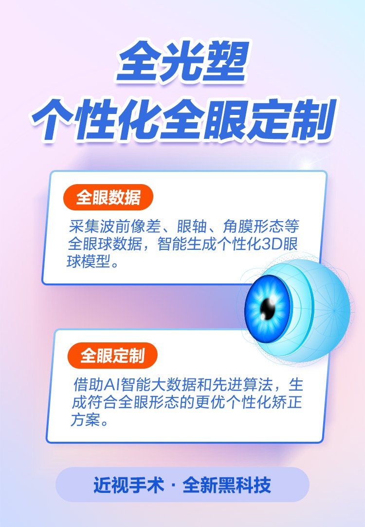 随着患者对医疗服务质量的要求不断提高,精准化、个性化的治疗越来越被青睐。由于每个人的眼部结构和病情都不尽相同,因此,个性化的手术方案成为了一种趋势。近视手术的黑科技——“全光塑”设备正是应答这一需求而诞生。