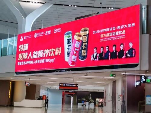 大厅日均服务旅客可达数万人次,值机岛、安检通道、商业区规划高效,承载着从清晨到深夜的持续客流高峰。巨大的航班信息屏实时刷新,精准调度着每一段旅程的启程与抵达。在如此高流量、高曝光的国际级交通枢纽内,速力奥携手2025世界斯诺克·西安大奖赛的品牌巨幕,正位于旅客动线的核心位置,持续传递品牌能量。
