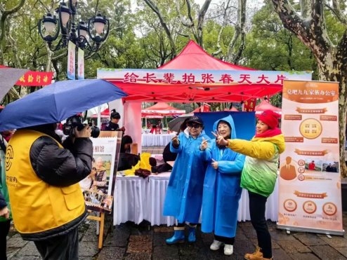 在上海市虹口区新时代文明实践中心、区委宣传部、区文明办牵头举办的3·5学雷锋“银龄行动”中,九九家族办公室以“银发照相馆”的形式参与公益市集,为长者们免费拍摄春天的大片,定格下每一位长者们最纯粹的笑容。