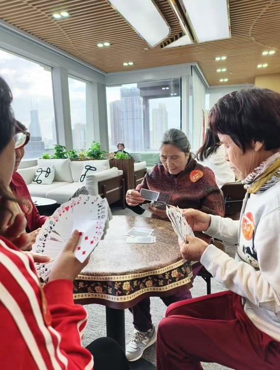 ● 桌游课里玩“谁是卧底”,阿姨们互相猜身份,叔叔们负责一本正经演戏;