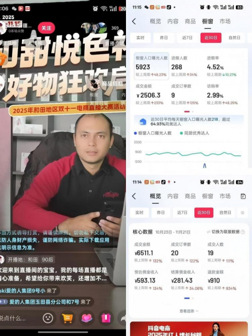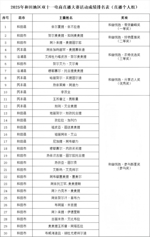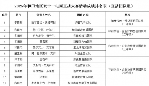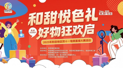 11月1日至11月22日,为期23天的2025年和田地区“和甜悦色礼·好物狂欢启”双十一直播大赛圆满结束。此次活动借助“双十一”消费热潮,通过地县乡村四级联动,采用线上直播和线下销售的营销方式使和田特色产品获得更多消费者关注。通过此次活动引导了更多群体参与进来,共同宣传推广“和甜悦色”区域公共品凝聚品牌效应,构建品牌+本地好物宣传营销矩阵,共同宣传和田特色;同时充实了本土电商直播力量,加强了本土电商人才建设,为和田地区电商直播注入持久动力。