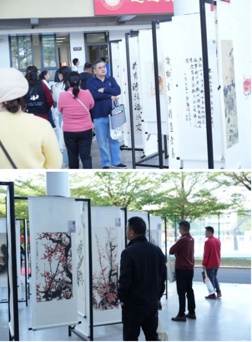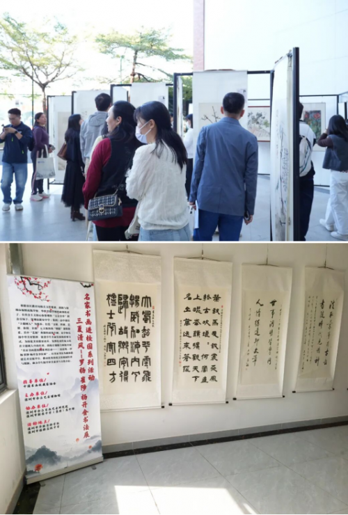 华胜实验学校专场展期为11月27日至12月12日,现场50幅岭南画派经典作品按“山水、花鸟、书法”三大题材分区陈列,引得师生驻足品鉴、交流探讨。11月28日至12月13日,福桥高级中学专场接续开展。展览重点呈现“三夏清风——罗杨 崔陟 杨开金书法展”的50幅作品,笔墨间尽显汉字之美与文化底蕴,让师生直观感受传统书法与时代精神的融合。