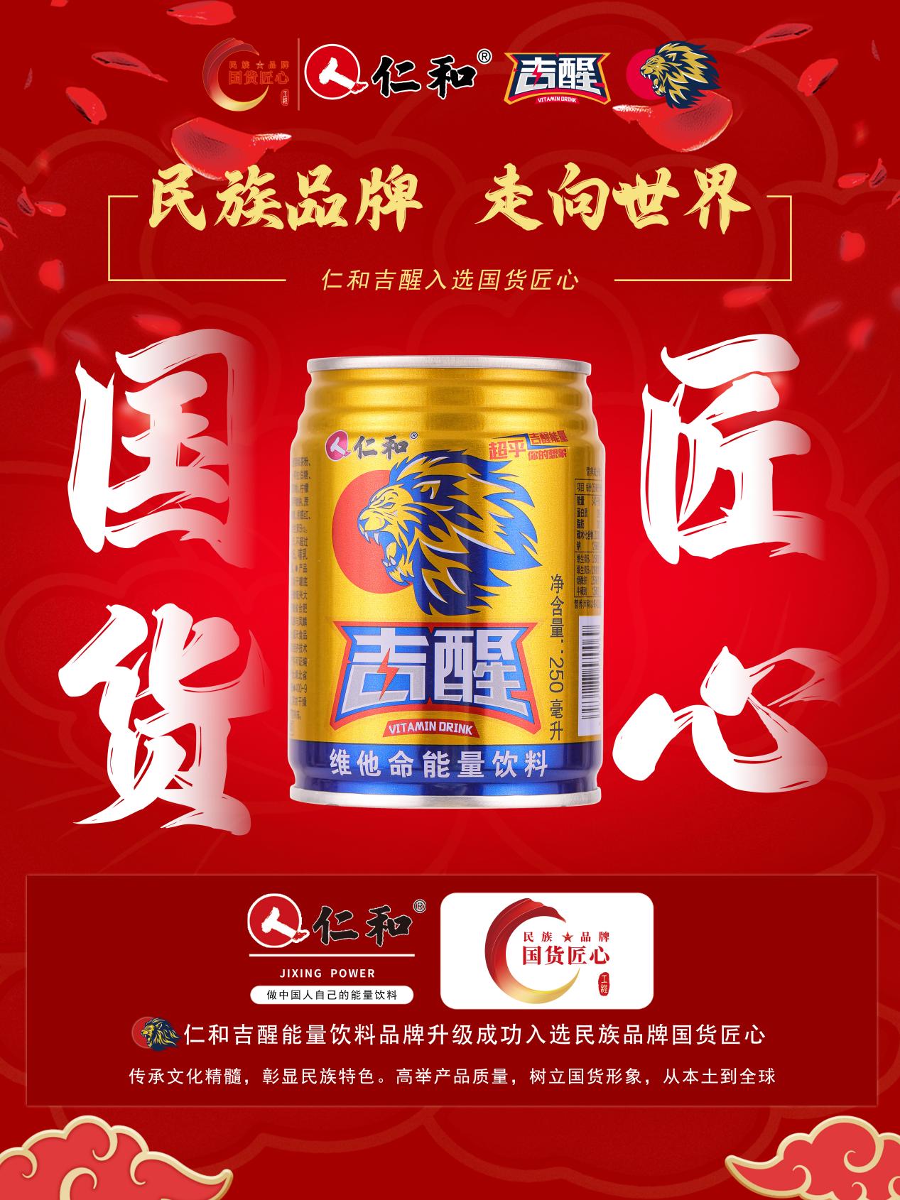 喜报!仁和吉醒能量饮料成功获得“民族品牌国货匠心”荣誉