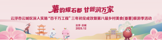 本次活动不仅是展示云城乡村文化魅力的窗口,更是推动乡村振兴战略的一次创新实践。活动从12月5日开始持续至2026年3月5日,将开展千人徒步、非遗系列展示、主题摄影大赛、花海艺术节、“村碗村宴”等活动,以“薯”为媒,推动云城区农文旅体融合发展,为云浮深入实施“百千万工程”写下生动注脚。
