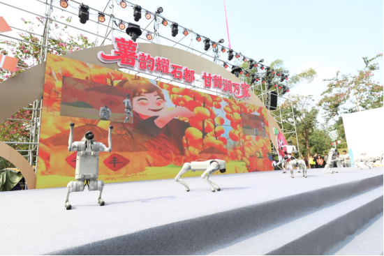 倒立、旋转、跳跃……开幕式上,机器狗的“庆丰收”舞蹈拉开了本届番薯盛会的帷幕,让云城区农业新质生产力真实可感。