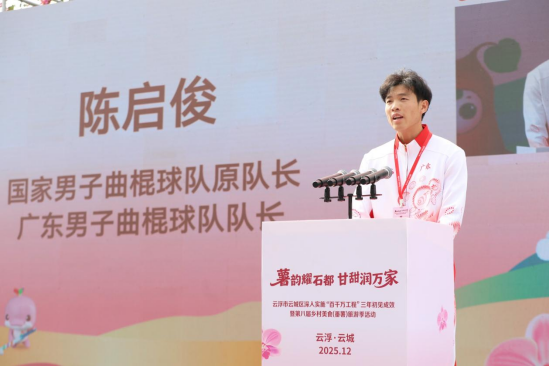 以“农”为首,云城区将本届番薯盛会延伸至文、旅、体方方面面。“近年来,我看到‘百千万工程’让家乡前锋镇的乡村变美了、道路变宽了,乡亲们的日子像番薯一样越来越甜,我打心底里骄傲!”广东男子曲棍球队队长陈启俊很开心看到越来越多人爱上“云城番薯”,“今天的活动就是生动的缩影,用我们云城番薯,搭起乡村与世界的桥梁,让更多人尝到家乡的美味,看到乡村的活力。”
