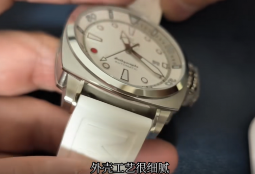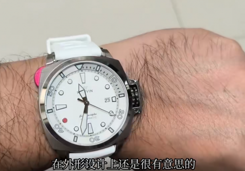 摩纹表还有两个独特之处,就是在每款表上的表壳上都印有摩纹家族印记,在表盘8点钟刻度或时标涂成红色。刻家族印记这点还好理解,为什么把8点位置涂红,这至今也是个未解之谜。潜水表搭配氟橡胶表带很符合目前的主流,表带上固定圈位置做了小卡子,固定圈就不会乱窜了。这个小细节做的很用心。表扣做的很厚重,而且也做了拉丝和抛光的双重工艺处理。43mm的尺寸,搭配MAR620A.H机芯,整套算下来5000多,性价比还是不错的。