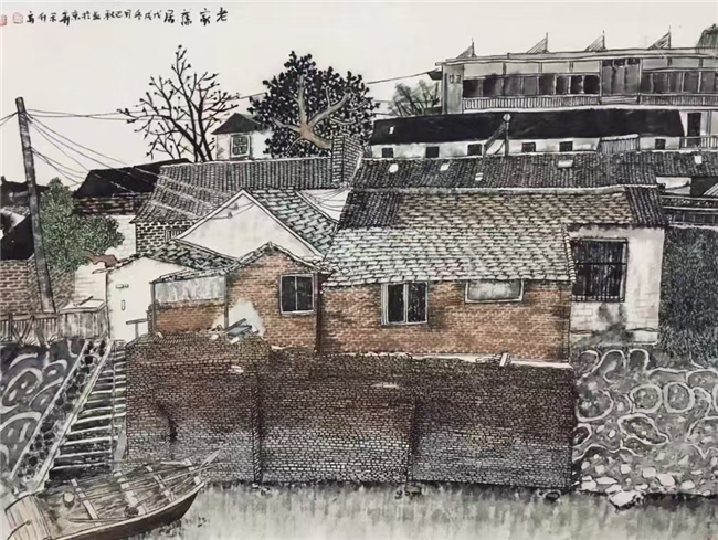 巴秋选辑过自己的画作题跋,呶呶中偶有鞭辟入里之句,比如《水乡一隅》,“对于中国山水画,我约略将前人总结的经验,如杜大恺老师所谓白底、线性、平面、程式化或装饰性,及老圃关于绘画关系说,及西画之构成、色彩等元素,用于我之绘事实践中,舍此无它也”,属于总结陈词,言近旨远。