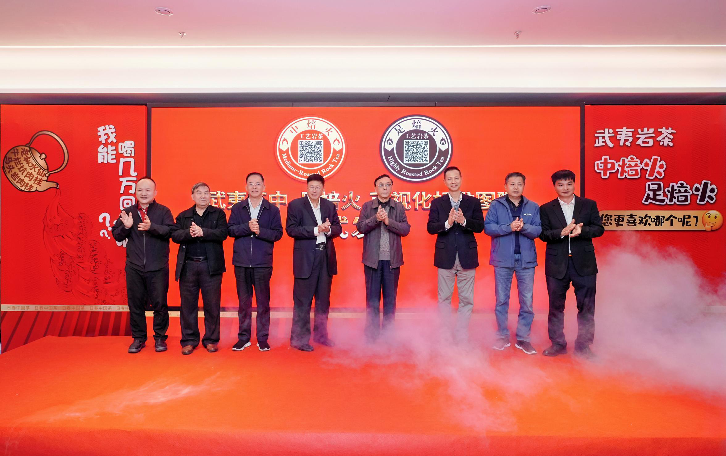 本次活动上,日春茶业发布行业首个武夷岩茶中、足焙火可视化标准图腾,并同步推出专属产品标签,为武夷岩茶产业标准化发展树立全新标杆。现场,两枚印刻“中焙火”“足焙火”字样的圆形标识正式亮相。这一创新标识如同岩茶焙火工艺的“身份名片”,将传统依赖匠人经验的火功判断,转化为直观可辨的标准化符号,实现了焙火工艺从“经验传承”到“标准可视”的关键跨越。