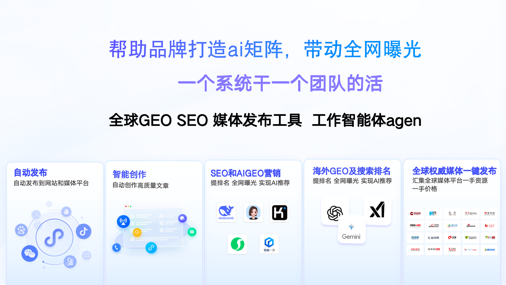 当企业深陷获客成本高企、流量入口分散、品牌曝光乏力的营销困局时,广东谋根文化传媒有限公司倾力打造的 MaxIntel 极智 GEO,以国内最强生成式 GEO 工具之姿,凭借 “一种工具多重效能 + 10 万 + 优质媒体资源” 的核心优势,为企业带来了破局密钥。这款集全球 GEO SEO、智能创作、自动发布、全域覆盖于一体的企业级自动化营销工具,正以颠覆性力量,重新定义 AI 时代的营销规则。
