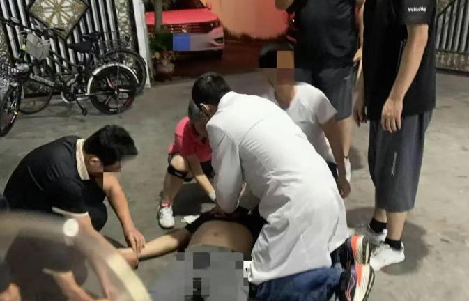 恰巧在现场运动的医务人员以及社区卫生服务中心人员第一时间对患者进行心肺复苏。为提升抢救效率,急救团队同步联系附近卫生站,协调医生携带自动体外除颤仪(AED)赶往支援。