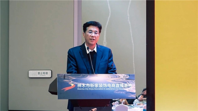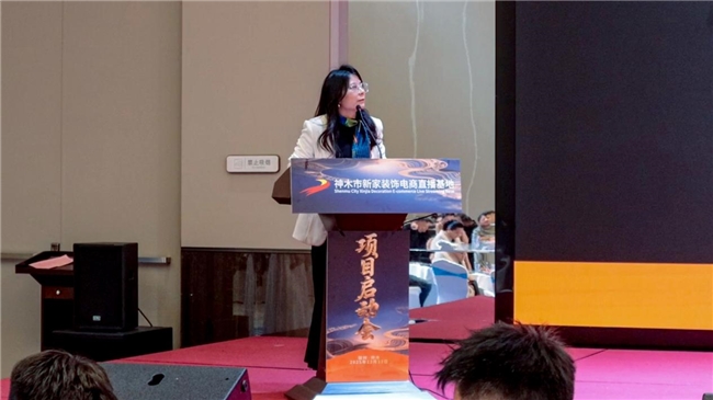 而后,神木市工贸局局长贾韬、榆林市商务局副局长杨跃先后发表讲话,肯定了项目对区域产业升级的积极意义,表示将为项目发展提供坚实保障与政策支持,助力基地在神木这片热土上深耕细作、蓬勃发展;陕西省室内装饰协会家装委员会秘书长郑晓峰女士致辞,对基地启动表示祝贺并寄予殷切期望,强调行业协会将全力支持装饰行业与直播电商的创新融合。