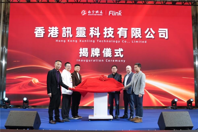 在所有嘉宾的共同见证下,南方网通集团董事长兼CEO费勇先生、南方网通副总经理及全国渠道负责人梁金凯先生、研发总监朱金燚先生、产品总监曾文先生、香港訊靈科技有限公司负责人赵坤先生、海外代理商Horion Marketing创始人兼CEO的JD McMahon先生共同登台,为香港訊靈科技有限公司揭牌。这一仪式,不仅揭开牌匾,更象征着我们从本土走向全球、从当下通往未来的全新启程。