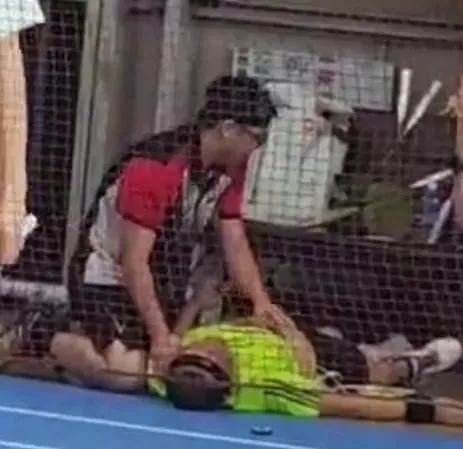 球馆第一时间启用AED设备,李医生熟练撕开电极片、精准粘贴,在设备提示下进行电击除颤,并持续开展心肺复苏。经过三轮紧张施救,孟先生终于恢复自主呼吸和心跳。