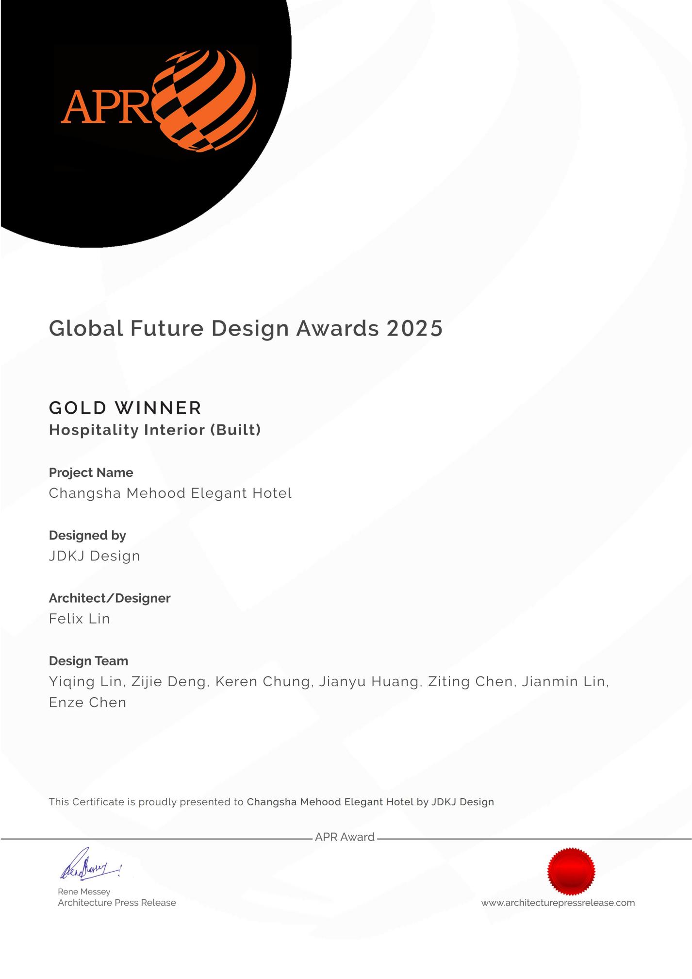 ▲湖南·长沙五一广场雅致酒店荣获2025加拿大4 Future awards金奖