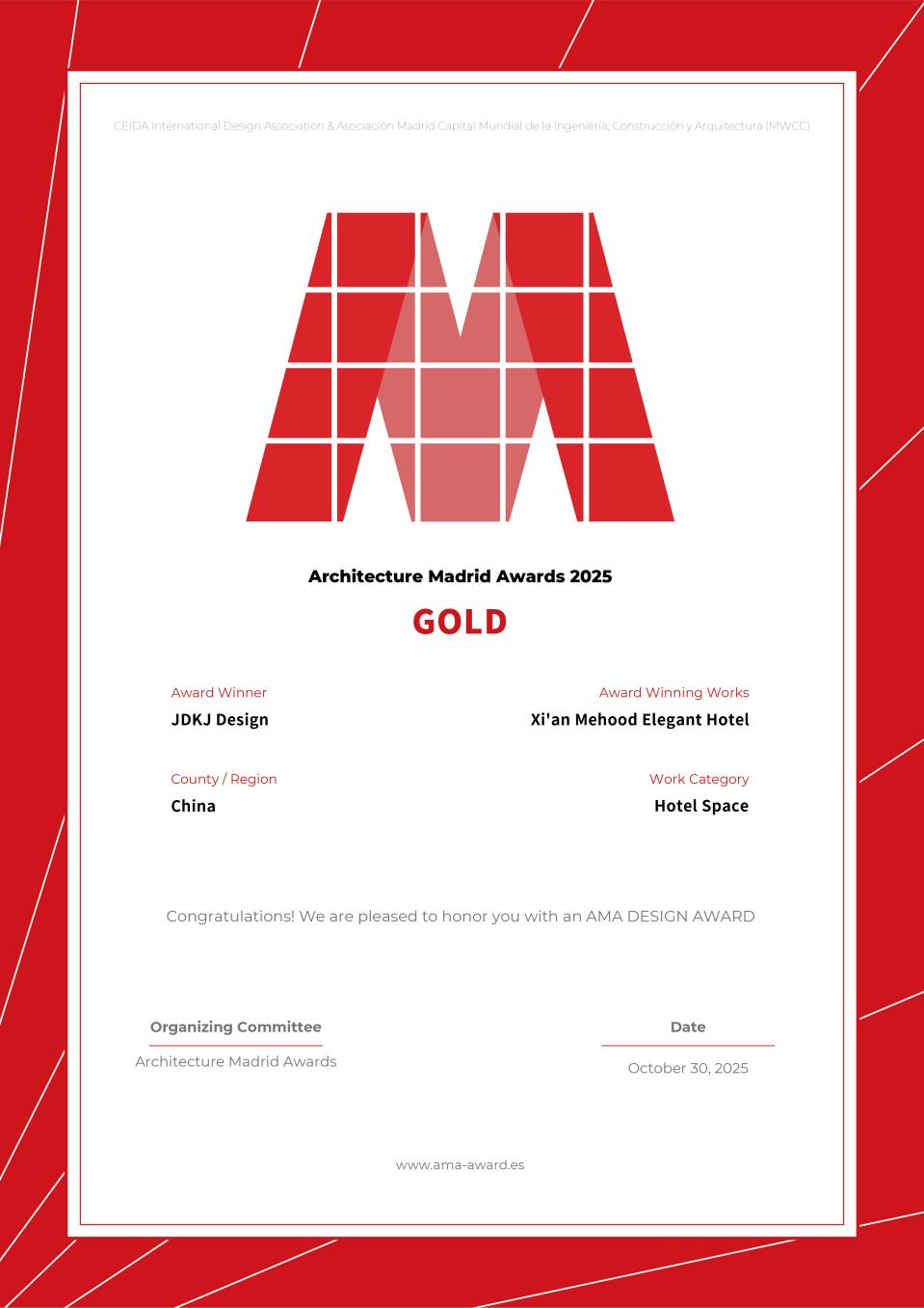 ▲西安·永宁门雅致酒店荣获2025西班牙AMA国际建筑设计金奖