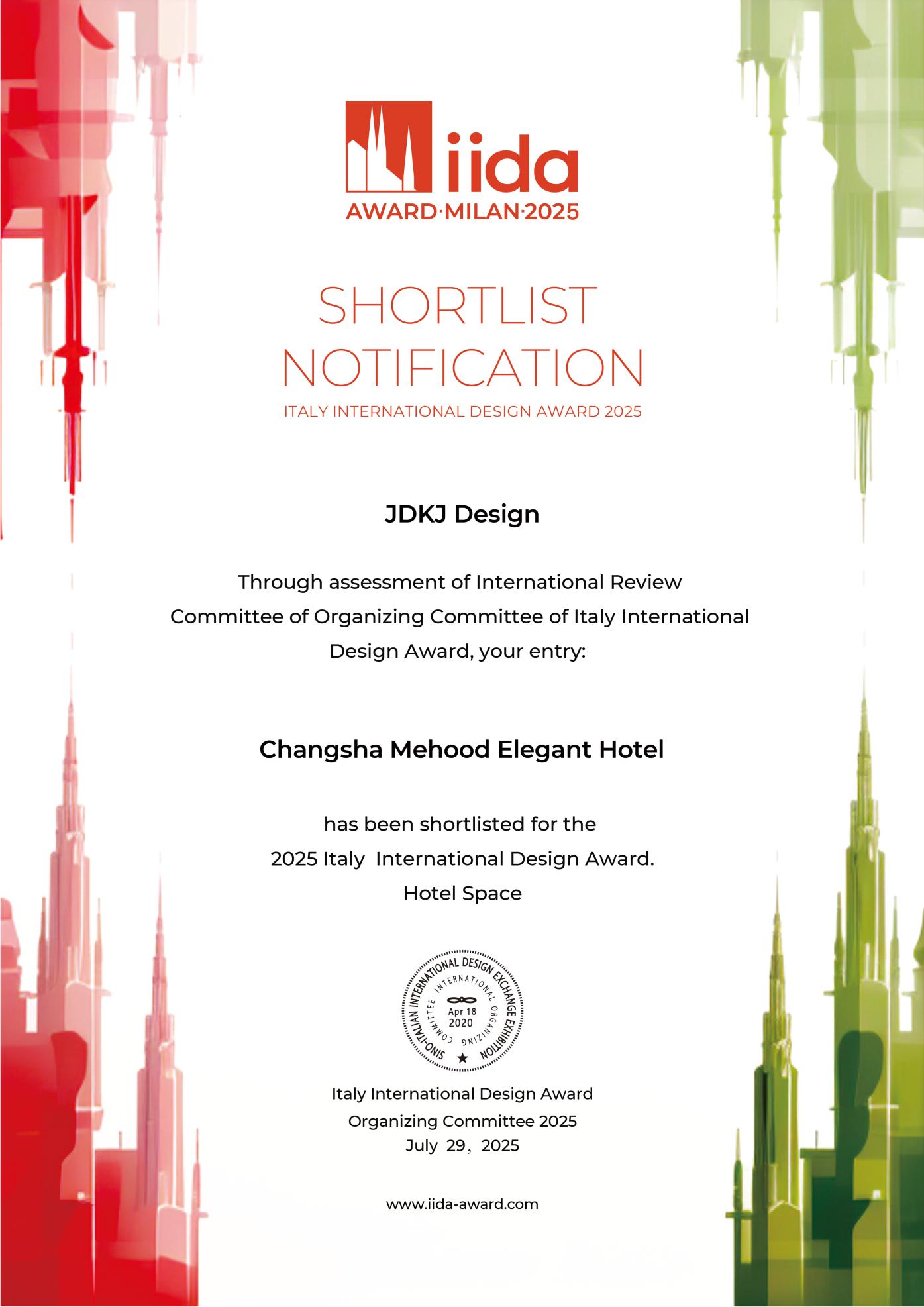 ▲湖南·长沙五一广场雅致酒店荣获2025年意大利IIDA AWARD国际设计奖