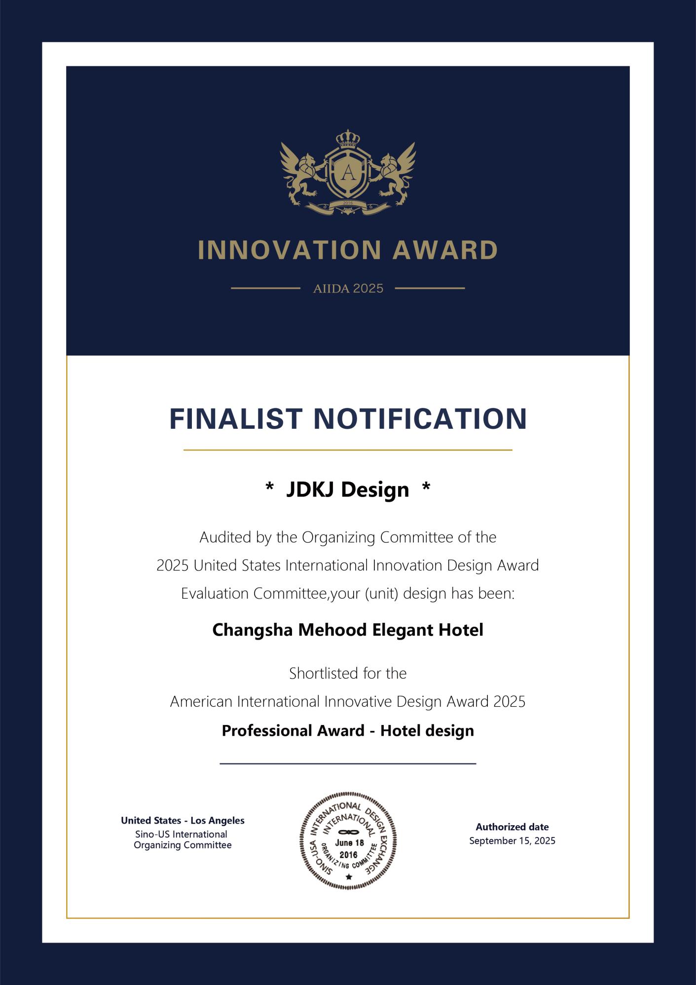▲湖南·长沙五一广场雅致酒店荣获2025年美国AIIDA AWARD国际创新设计奖