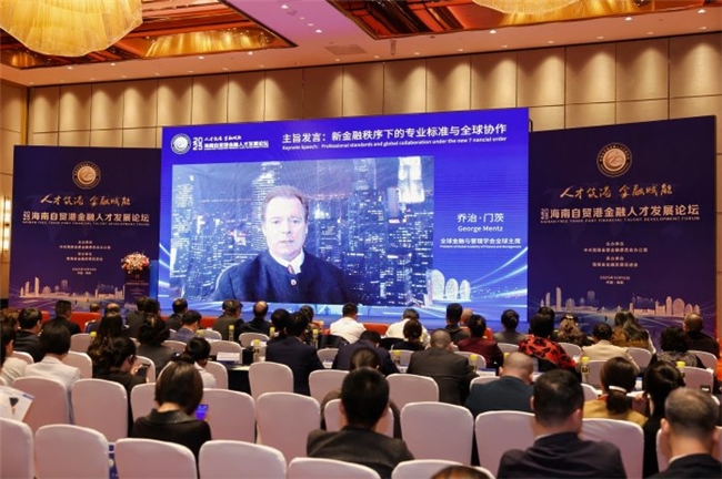 全球金融与管理学会(GAFM)全球主席乔治·门茨(George Mentz)通过视频形式发表了《新金融秩序下的专业标准与全球协作》主旨演讲,从全球视野为海南金融人才发展提供了相关建议。