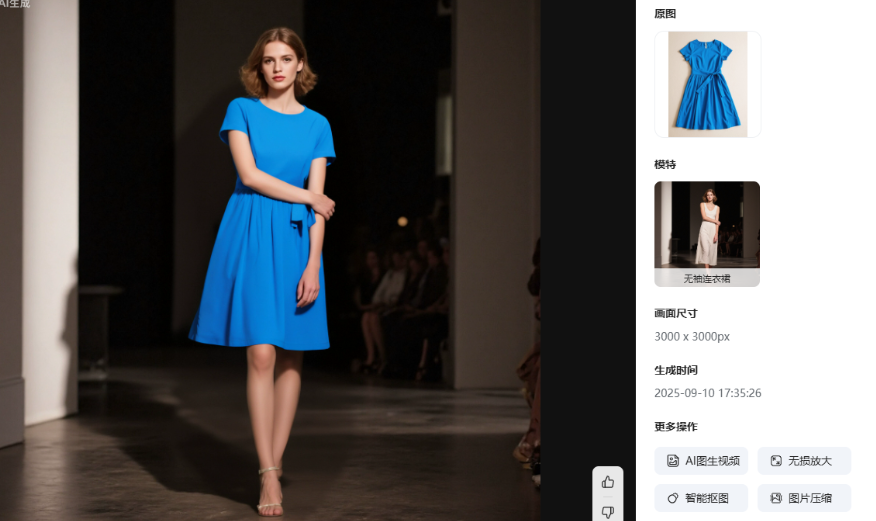 同时,它还支持用户上传自定义的模特图片,生成服装效果图。