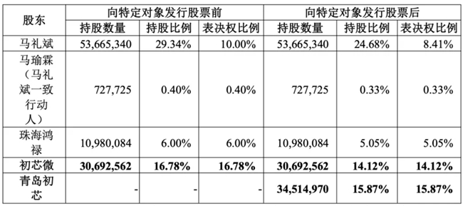 交易完成之后,初芯微将成为上市公司控股股东,上市公司的实控人将由马礼斌变更为尹佳音。