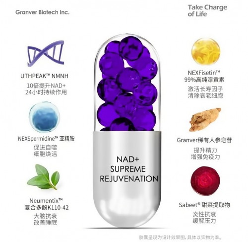 通过LipoAvail脂质体与肠溶微囊双相递送系统,脑部递送效率提升9倍;超临界萃取技术使稀有皂苷生物利用率达99.9%;晶型稳定专利实现NMNH 36个月常温保存。从皮肤、神经到代谢、免疫,实现十大衰老维度同步干预。