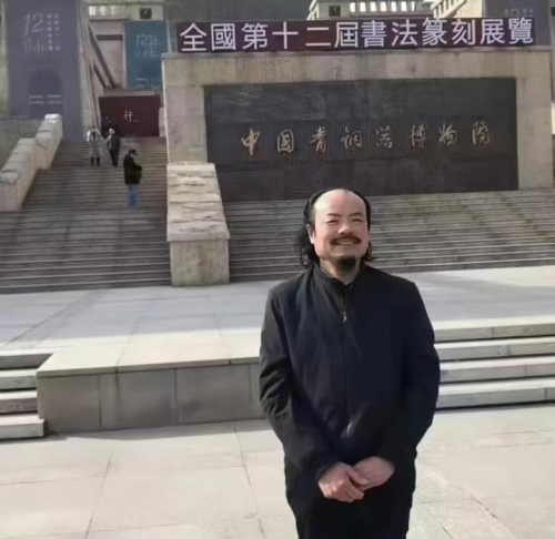 他的求艺之路带着泥土的韧劲:从兰州工专商业美术专业的启蒙,到京城高碑店杨赛峰工作室近一年的深耕,再到非遗传承谱系中的淬炼,每一步都踩着对传统的敬畏与创新的勇气。周大正等西北名师的教诲,让他深谙笔墨与黄土地的精神联结;中国书协西部基地的研修,又为其诸体兼擅注入学术厚度。那些辗转于庆阳学习班、文化部国展冲刺班的求学时光,恰似他笔下的飞白,留白处皆是对艺术的赤诚。
