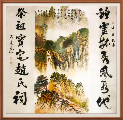 作为非遗传统书法技艺传承人,石文的作品从不局限于案头尺牍。他的笔墨里有浦河川的晨雾,有黄土高坡的沟壑,更有民族复兴语境下文化传承的担当。从中国教育电视台《水墨丹青》的现场挥毫,到苏富比拍卖场上定格的《天道酬勤》,从嘉德艺术馆的馆藏之作到国家版权登记的《黄土情深》,他以多元实践诠释着 “书法当随时代” 的深意。