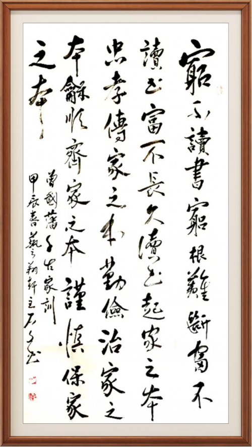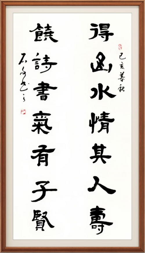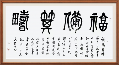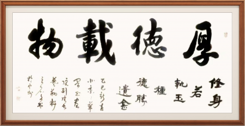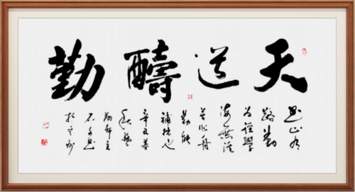在2023年苏富比拍卖的《天道酬勤》作品中,这种传承理念得到市场验证。作品在保持颜体骨力的同时,融入构成主义的空间分割,使传统励志题材焕发出现代审美价值。这种创新不仅体现在技法层面,更延伸至文化传播维度。2023年,他被授予"中国国宾礼艺术大师"称号,其作品成为展示中国文化的重要载体,这充分证明了他的艺术语言已经形成独特的"可辨识性",一种融合了个人气质与时代精神的风格标记。