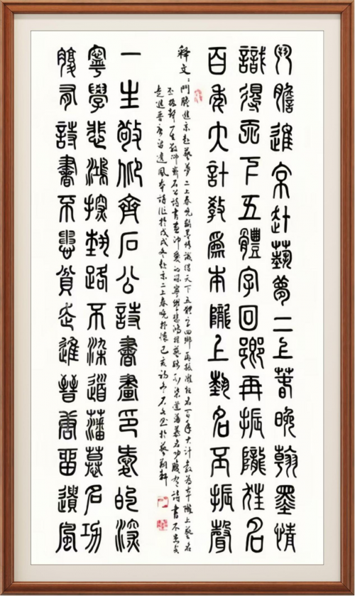 这段时期形成的艺术认知,在其后续创作中显现出独特价值。当多数同窗专注于商业美术的实用属性时,石文已开始思考如何将民间艺术的质朴语言转化为书法创作的视觉元素。这种超前意识,在其2016年赴京跟随杨赛峰系统研习诸体时得到深化,五体兼修的严格训练中,始终贯穿着对线条表现力的极致追求。