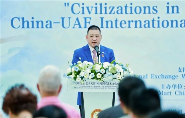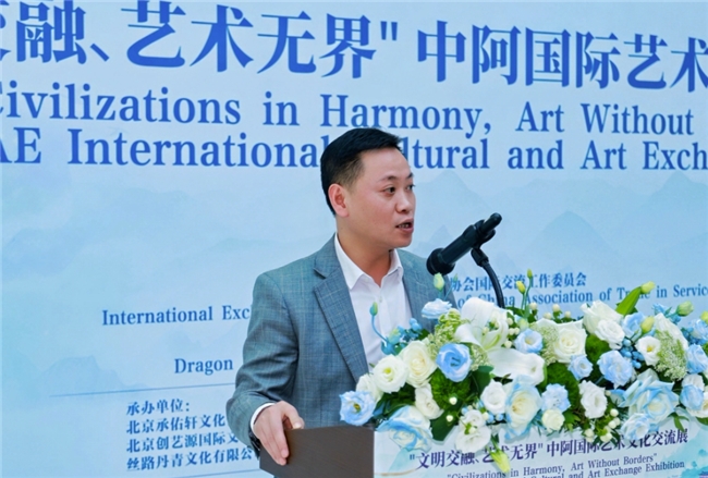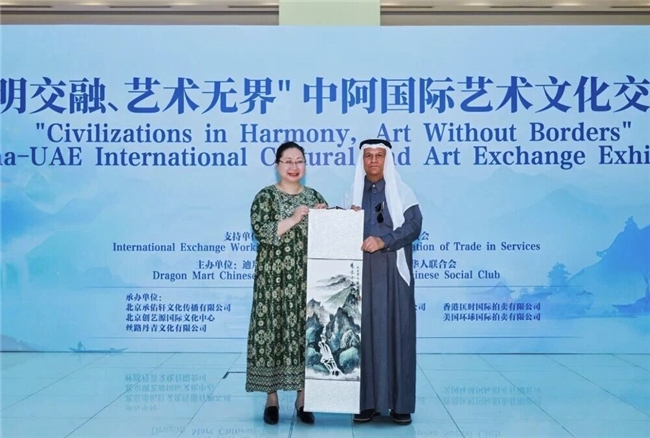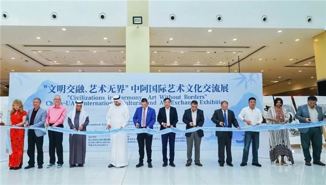 “文明交融、艺术无界”中阿国际艺术文化交流展12月20日在阿联酋迪拜举行。活动由迪拜龙城华侨华人总商会与阿联酋华侨华人联合会联合主办,中国服务贸易协会国际交流工作委员会支持指导。中阿两国文化界、艺术界、侨界及工商界百余名代表出席开幕活动,数千人次到场观展。