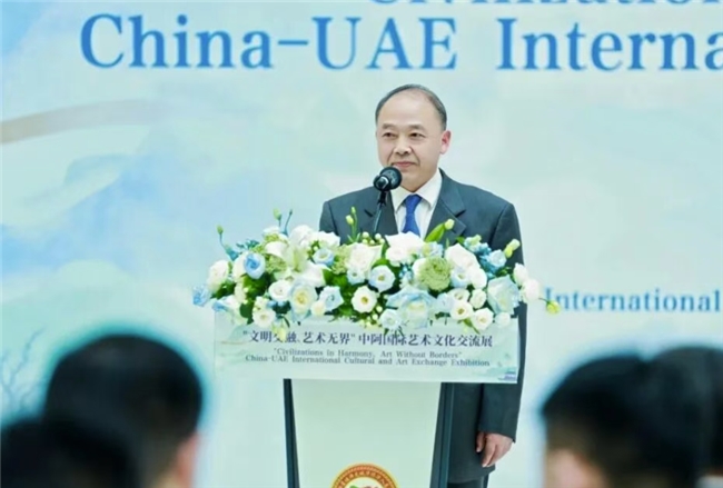 徐小平在发言中表示,中华美术源远流长、博大精深,不仅是视觉艺术,更是中华文明五千年智慧与情感的结晶。中国书画在材料、技法和美学理念上的独特表达,丰富了世界艺术的多样性,在全球化背景下正成为促进文明互鉴、增进人民友谊的重要纽带。他对中国艺术家远道而来参展表示感谢,并希望通过本次展览,让阿联酋及来自世界各地的观众更加直观地感受中华文化的魅力。