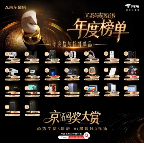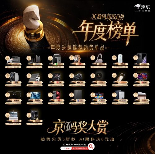 京东还隆重揭晓了“京码奖大赏”年度榜单,从海量产品与品牌中遴选出一批深刻契合年度趋势、并赢得市场与用户双重认可的标杆力量。本次3C数码超级趋势年度奖项联合京东金榜评选而成,京东金榜作为消费者认知度、使用体验和购买满意度显著领先行业的权威榜单,依托销售、口碑等动态数据构建严苛评选体系,更体现出获奖单品与品牌的趋势引领作用。