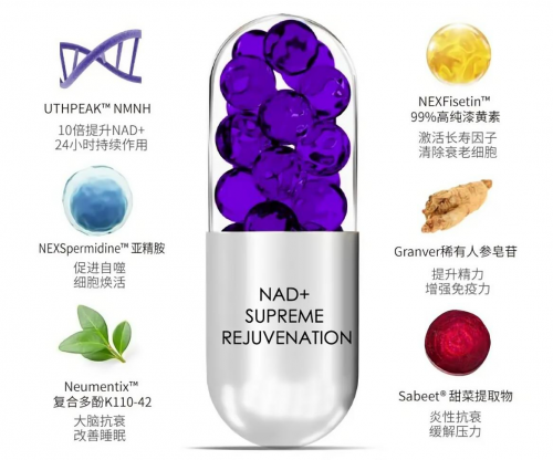 -UTHPEAK专利晶型NMNH:这可不是普通NMN,而是实打实的升级款——吸收率高达98%,15分钟就能起效,24小时持续发挥作用。临床显示,它提升NAD+的效果是传统NMN的10倍,还能激活SIRT1、3、6等长寿因子,促进细胞修复,且不增加肝脏负担。