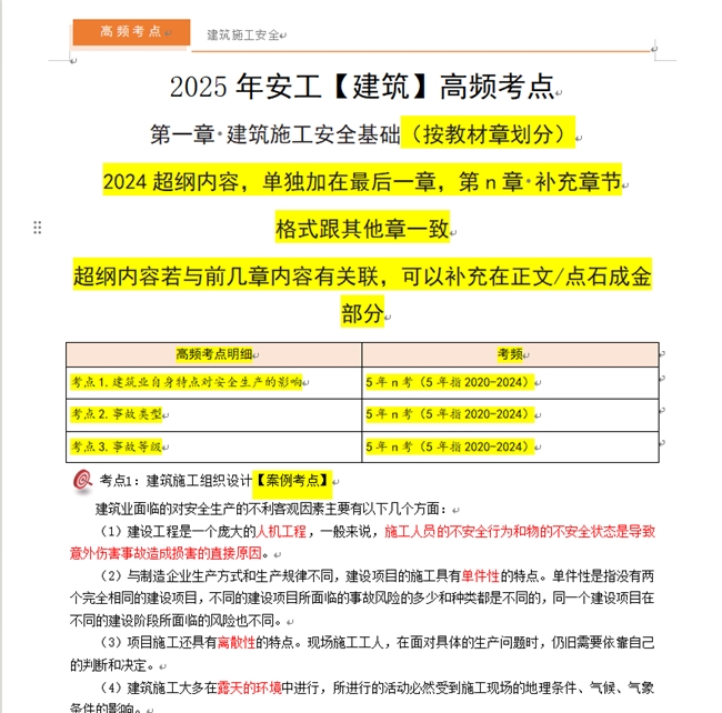 针对每一份资料,我们进行细致的章节分值分布分析,精准标注重点内容,并根据重要程度标注星级。同时,补充超纲知识,让学员手中的资料不再局限于单纯的“应试指南”,而是成为一本可随时查阅、实用性强的“安全工具书”。
