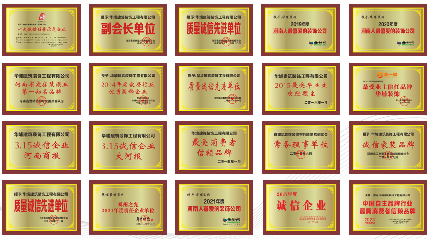 华埔装饰在发展过程中,凭借其卓越的实力和优质的服务,获得了众多荣誉资质。公司荣获建筑装修装饰工程专业承包壹级资质、建筑装饰工程设计专项乙级资质、河南省家居建材质量检验协会颁发的质量诚信先进单位与副会长单位、河南省诚信兴商活动组委会颁发的十大诚信经营示范企业等多项荣誉。这些荣誉不仅是对华埔装饰实力的认可,更是对其在行业内良好口碑的见证。