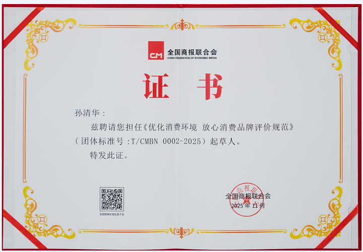 近日,“中国电商生态服务领军品牌”玺承控股集团有限公司正式获任《优化消费环境 放心消费品牌评价规范》(T/CMBN 0002—2025)团体标准起草单位,集团联合创始人孙清华同期受聘为该标准联合起草人。该标准由全国商报联合会、国家市场监督管理总局发展研究中心、对外经贸大学品牌战略研究中心联合牵头制定,标志着我国“放心消费”环境建设迈向系统化、标准化的新阶段。