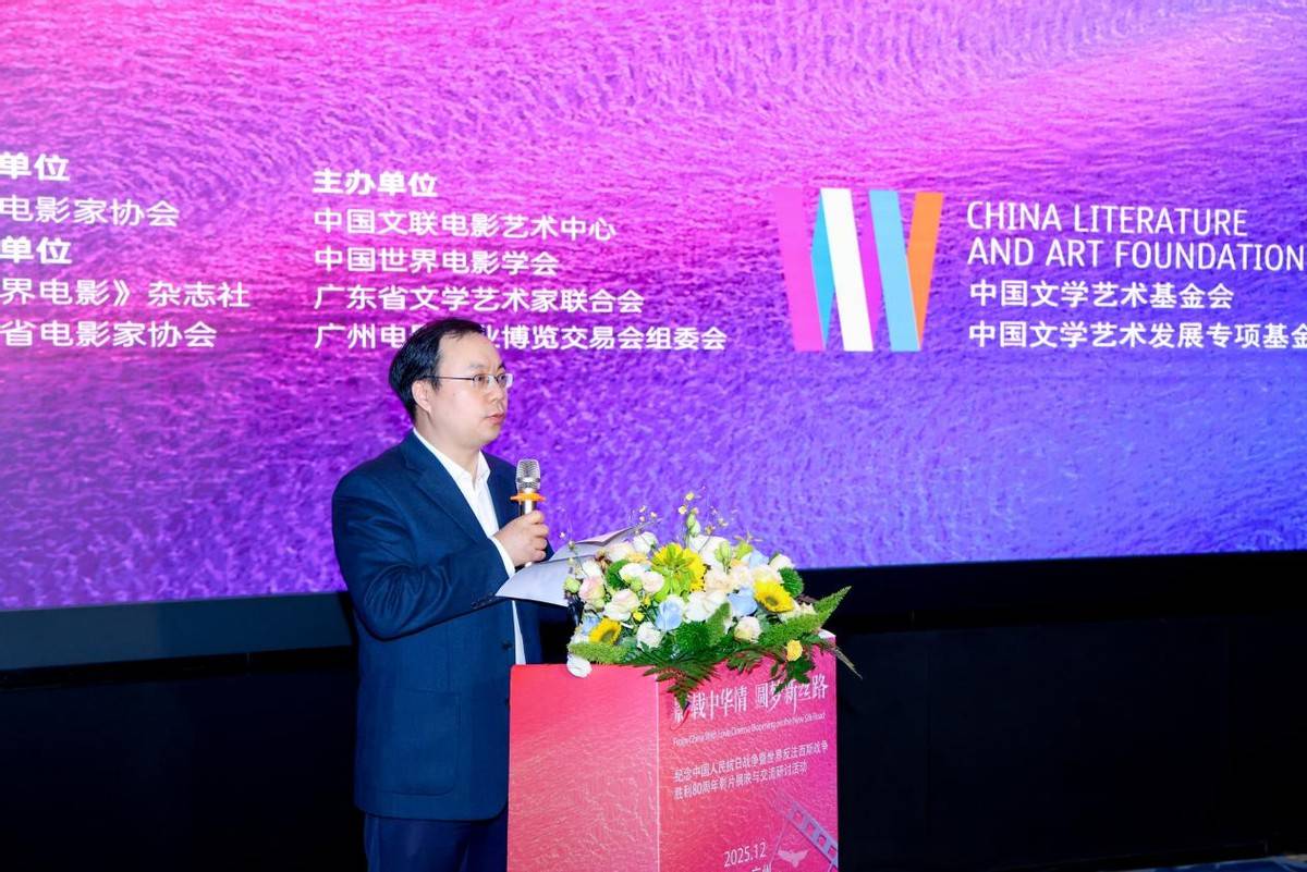 2025年12月19日,“影载中华情 圆梦新丝路——纪念中国人民抗日战争暨世界反法西斯战争胜利80周年影片展映与交流研讨活动”在广州市越秀区流花中心1号馆中国超高清数字纪实影像馆隆重开幕。本次活动由中国电影家协会指导,中国文联电影艺术中心、中国世界电影学会、广东省文学艺术界联合会、广州电影产业博览交易会组委会联合主办,《世界电影》杂志社、广东省电影家协会承办。该项目是中国文学艺术基金会、中国文学艺术发展专项基金资助项目。活动以电影为媒介,重温反法西斯战争历史记忆,深化中俄两国文化交流,为“一带一路”倡议下的文明互鉴注入影视力量。