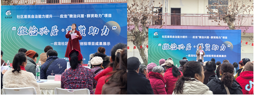 为集中展示微公益创投项目实施成效,总结推广优秀实践经验,进一步激发社区自组织活力与居民公益参与热情。2025年12月27日上午,应龙社区携手成都市成华区友善社会工作服务中心在应龙社区老年协会活动中心开展“微治兴居·群贤助力”—应龙社区微公益创投项目成果展示,通过项目展示、便民服务、特色展演等多元形式,充分展现了社区自组织的发展成果与居民自治活力。