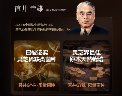 谈及免疫力提升,不得不提日本在灵芝研究领域的领先地位。直井幸雄教授作为"日本灵芝第一人",耗时30年从3000个灵芝菌株中筛选出唯一能在富氧环境中高效培育的超级菌种——直井GY株,被业界誉为"免疫之王"。