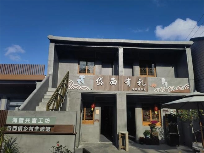 深挖海岛闲置空间价值,将废弃堆场、闲置农房、低效用地等“沉睡资源”转化为功能复合的共富平台,实现资源利用与风貌提升双赢。嵊泗县“金饭碗”共富风貌驿前身为长期堆放渔网、泡沫浮球的露天渔具堆场,通过“政府补贴+村集体自筹”模式,保留原始混凝土柱网结构,植入钢结构顶棚与玻璃幕墙,用旧渔具装饰墙面、渔家壁画重构渔港记忆,将200平方米露天堆场改造为集创意海鲜餐厅、文化展陈、产品展销于一体的滨海客厅。定海区小沙游客服务中心共富风貌驿通过流转闲置农房改建而成,总投资150万元,建筑面积352平方米,既提供订单集散、产品包装等全链条服务,又设立共富展销区推广本地农特产品,仅樱花节期间展销收入就超15万元,每月寄卖村民农副产品盈利稳定在3万元以上,共富直播间带动产品销售超800万元。